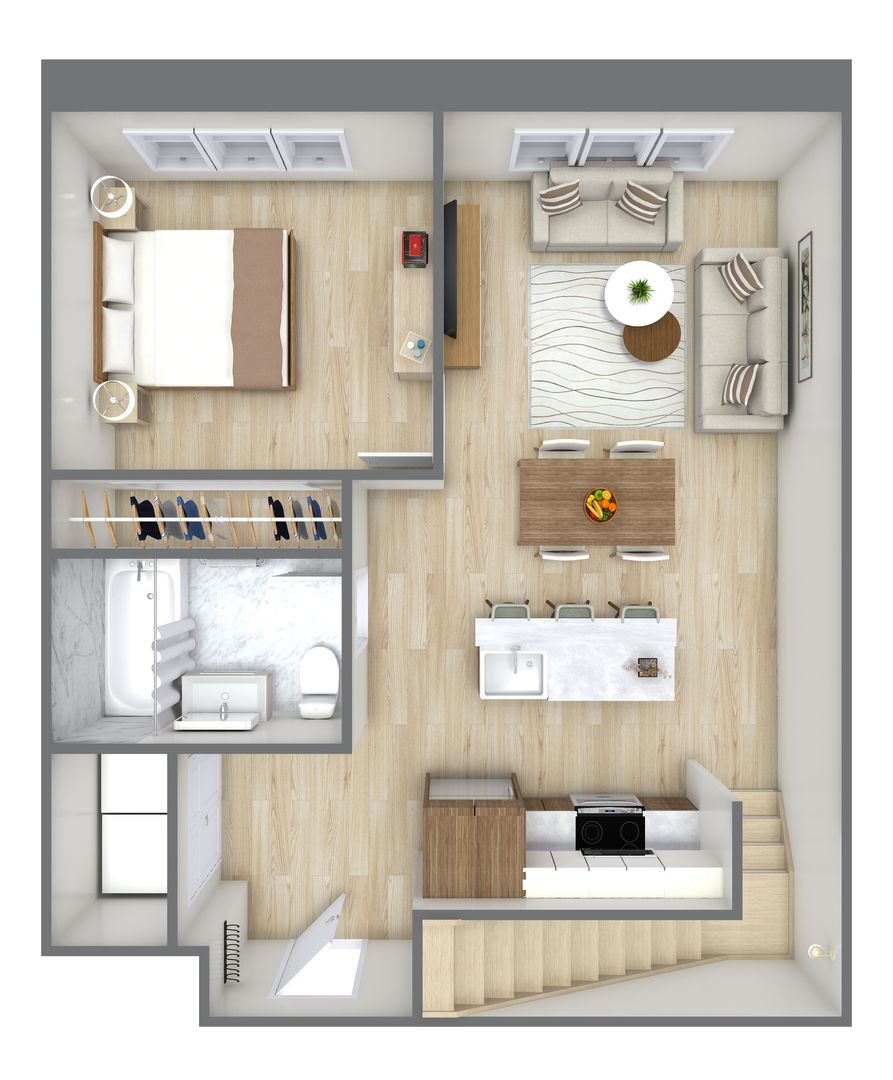 For convenient living, each unit features central air conditioning and heating, an in-unit washer and dryer, window shades and kitchen garbage disposal. Each resident also has access to on-site parking, indoor bicycle storage and a fitness center equipped with a full set of cardio equipment, weightlifting, and a turfed stretching area.
