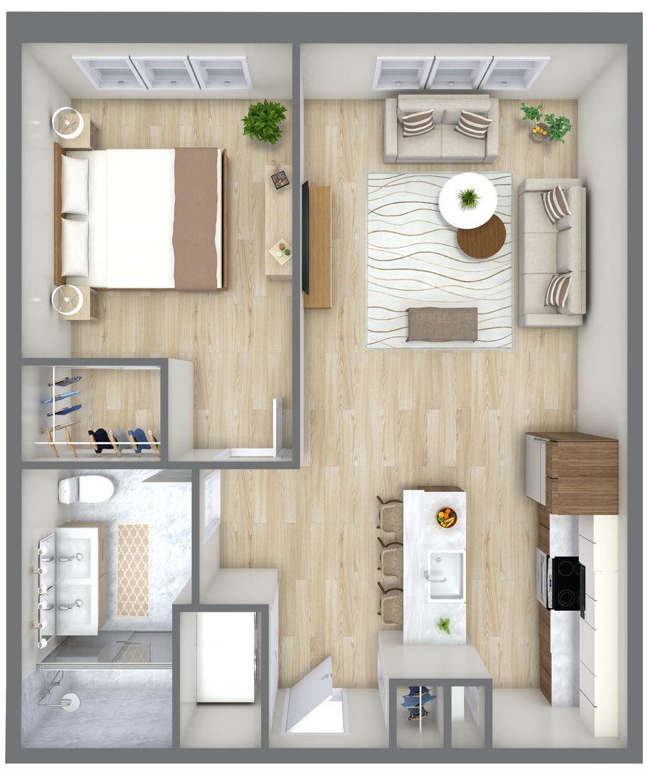 For convenient living, each unit features central air conditioning and heating, an in-unit washer and dryer, window shades and kitchen garbage disposal. Each resident also has access to on-site parking, indoor bicycle storage and a fitness center equipped with a full set of cardio equipment, weightlifting, and a turfed stretching area.