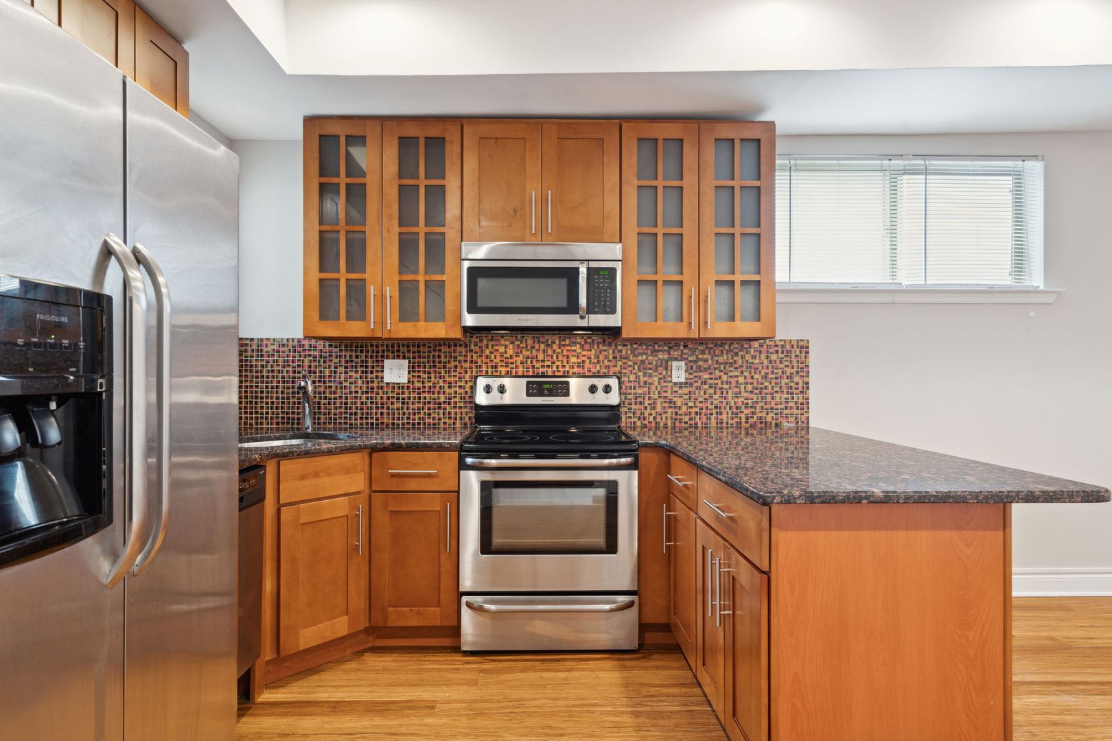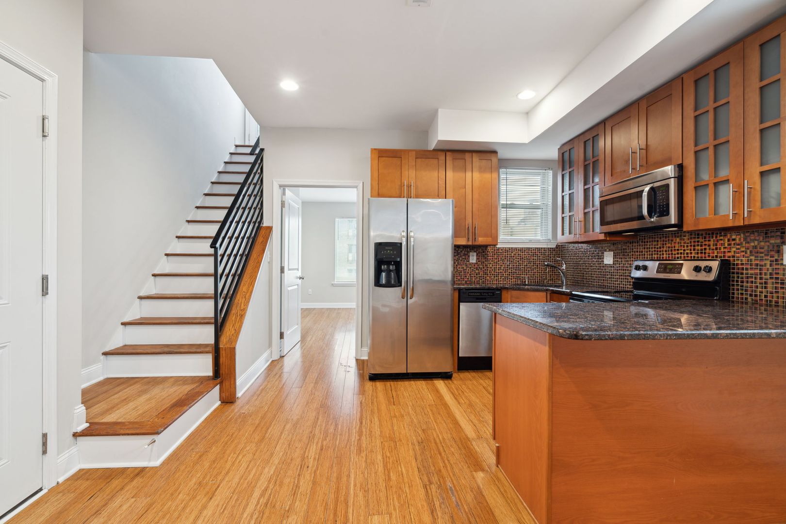 Welcome to 1633 Carpenter Street Unit D! Located a few blocks away from Philadelphia's bustling South Street, this Graduate Hospital apartment features teak-toned kitchen cabinetry set around granite countertops and stainless steel appliances. The layout is configured with the kitchen and living area connecting the two bedrooms to allow for a central gathering and leisure space. The unit bathroom has a beige-mosaic tile finish and lastly, the unit has an outdoor balcony ready for you to relax and bask in the Philadelphia sun.