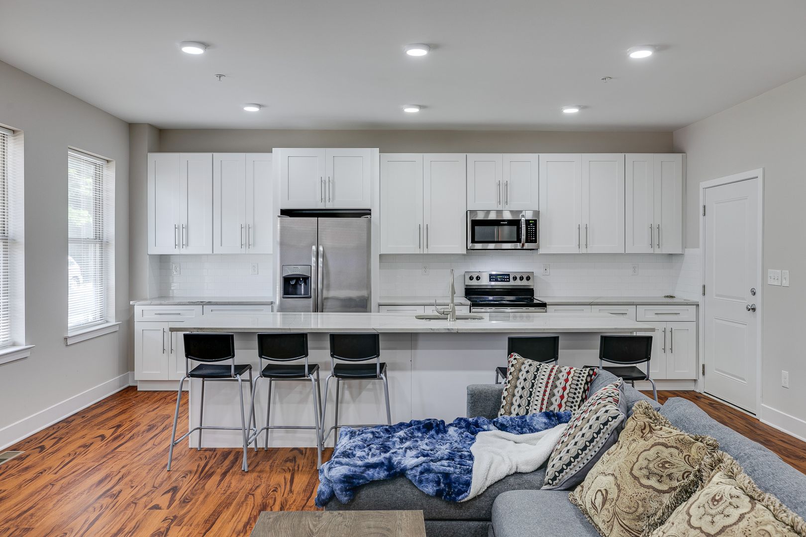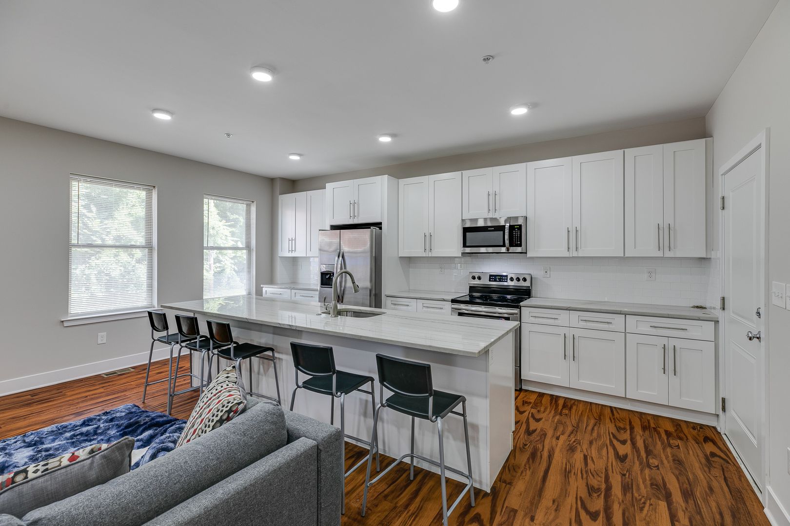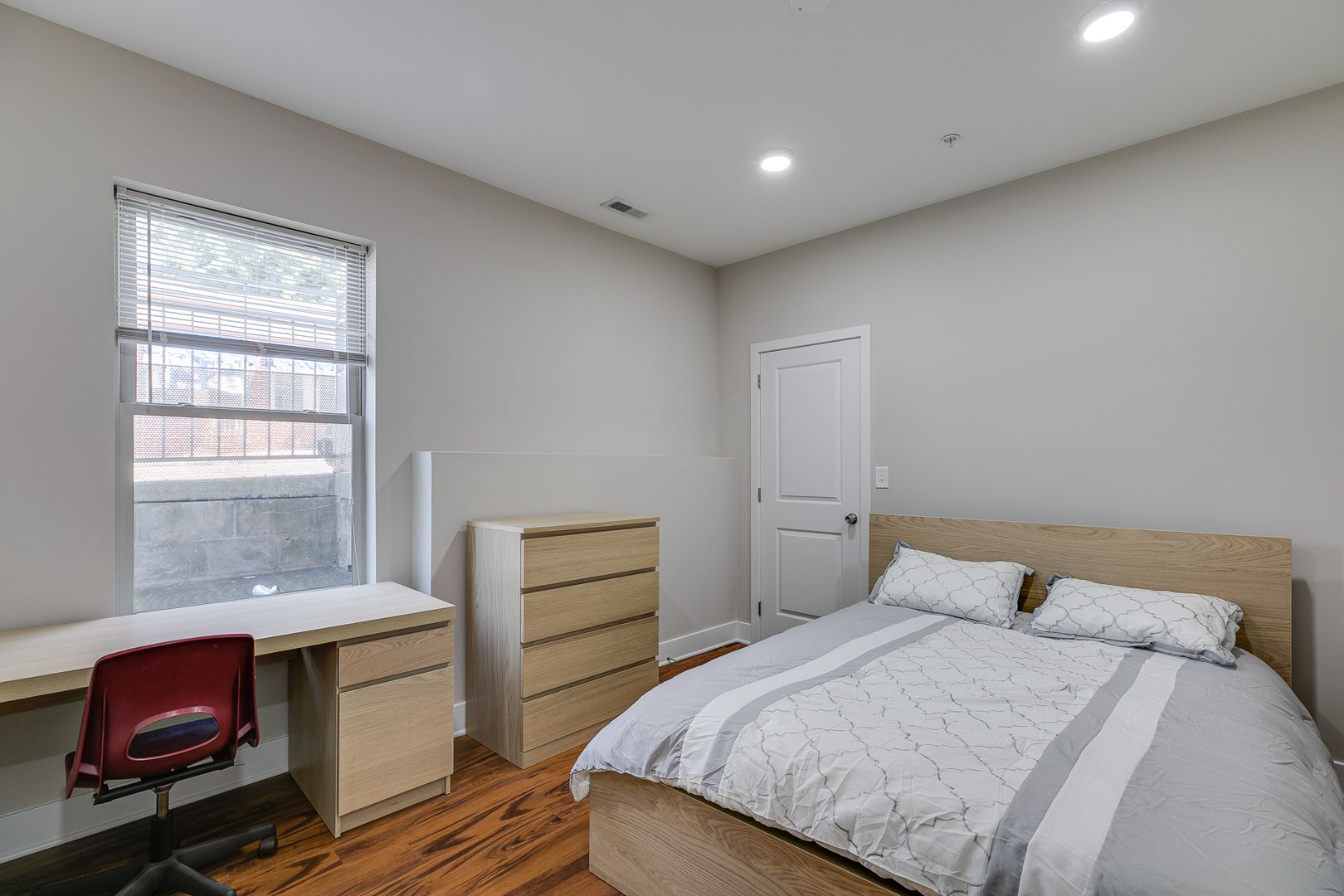 Welcome to 549 Armstrong Street Unit 101! Step inside this fully furnished, sun-soaked, bi-level five-bedroom three-bathroom apartment to discover an eat-in island kitchen with Bethel-white granite countertops and stainless-steel appliances set around pecan wood-toned flooring. These features are accentuated by two large living spaces located on separate floors and the many windows that provide and disperse natural light. Each bedroom provides ample closet space and room for a dresser, nightstand, desk, and any other additional accessories.