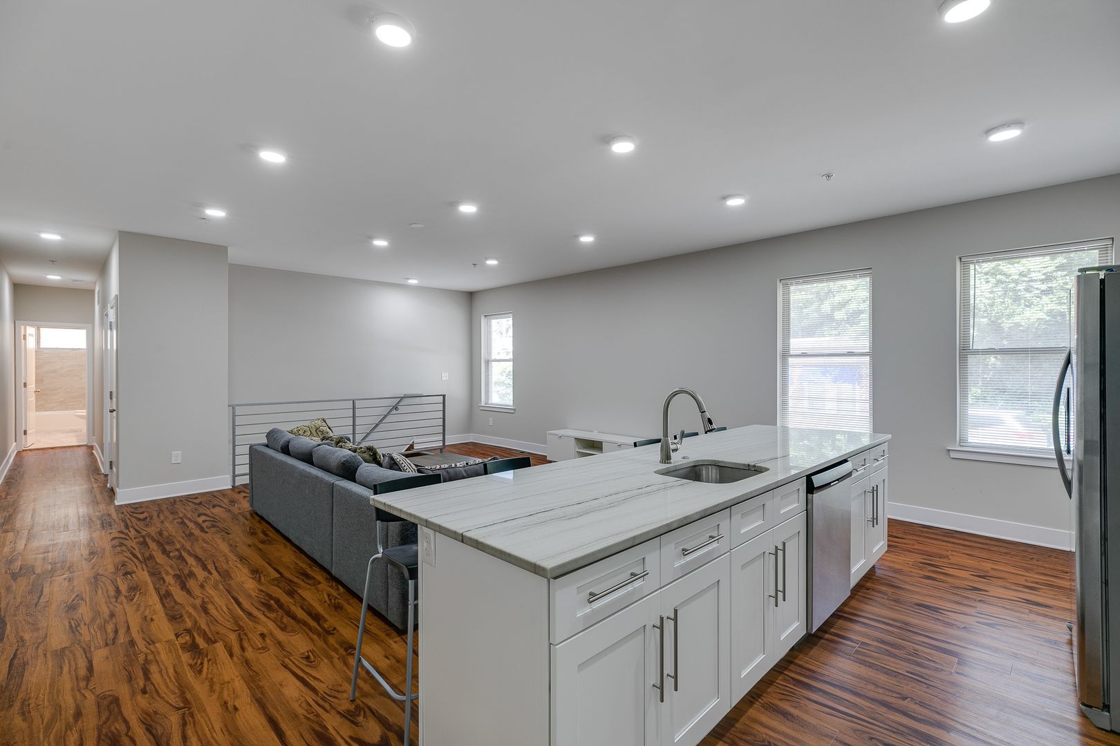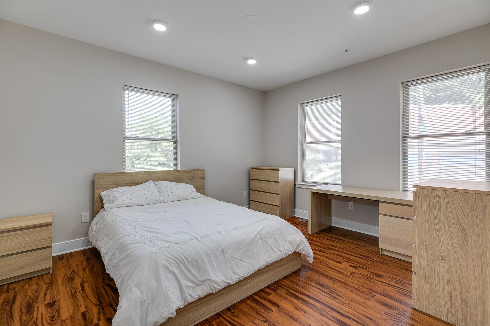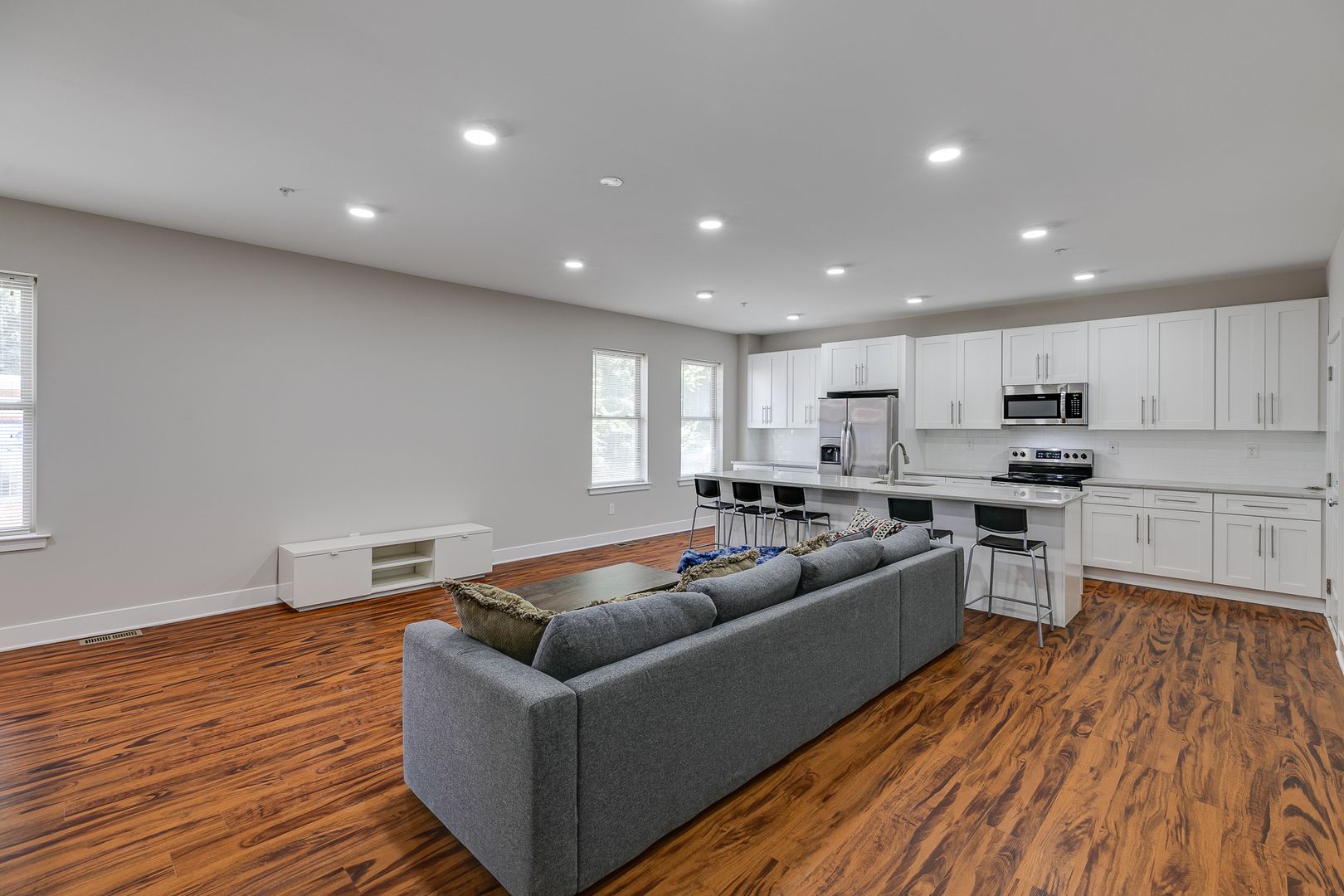 Welcome to 549 Armstrong Street Unit 101! Step inside this fully furnished, sun-soaked, bi-level five-bedroom three-bathroom apartment to discover an eat-in island kitchen with Bethel-white granite countertops and stainless-steel appliances set around pecan wood-toned flooring. These features are accentuated by two large living spaces located on separate floors and the many windows that provide and disperse natural light. Each bedroom provides ample closet space and room for a dresser, nightstand, desk, and any other additional accessories.