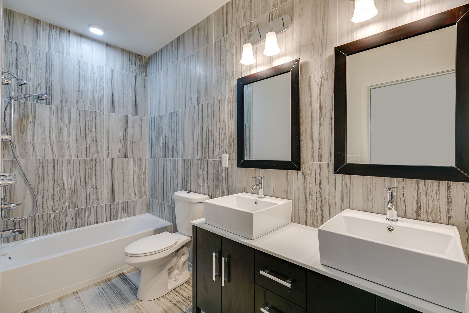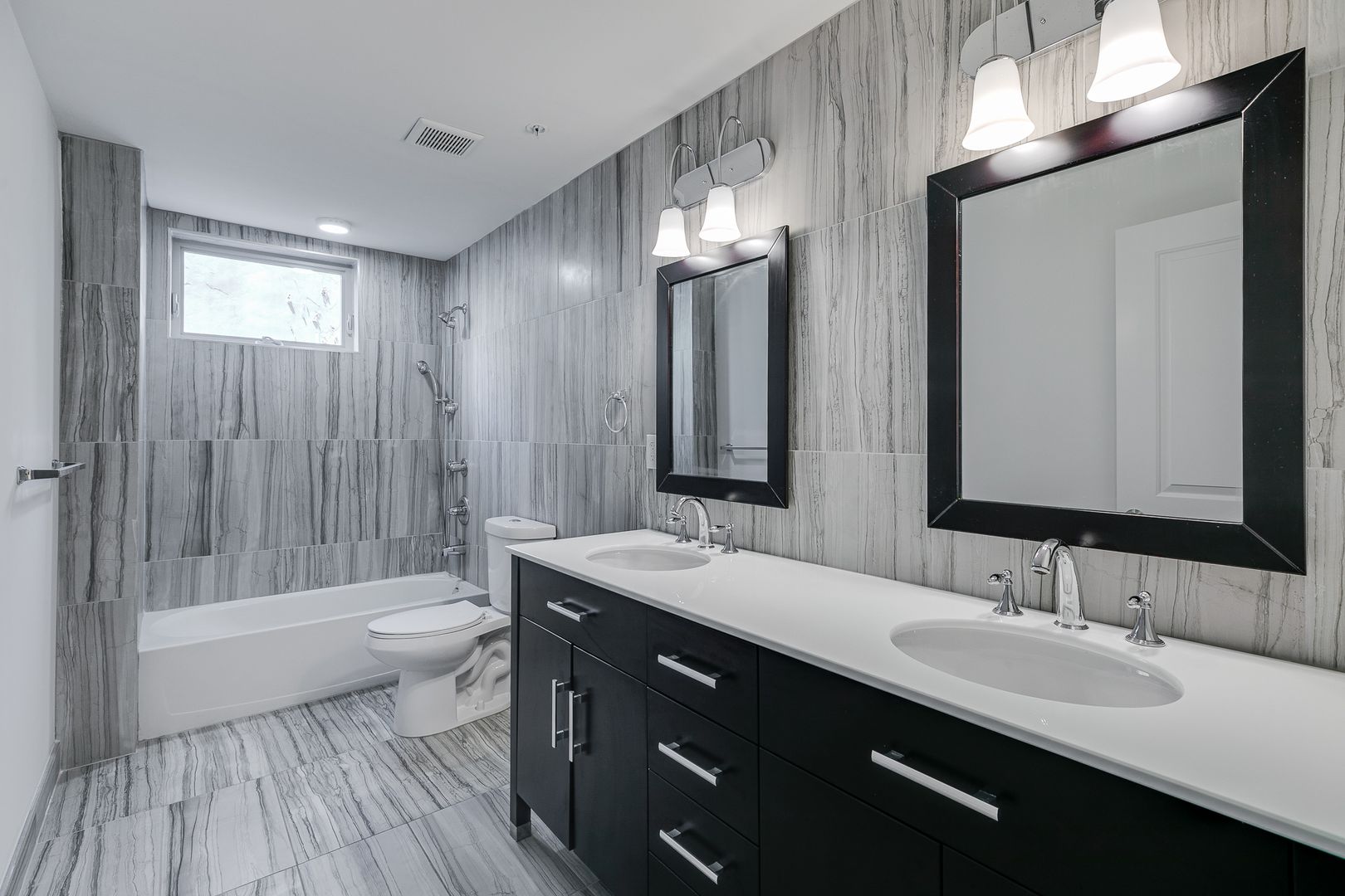 All bathrooms are lined with stone-toned tile and two feature double-sink vanities. For comfortable living, this unit has a central AC system, an in-unit washer/dryer, as well as a video intercom system to let your guests in and communicate with delivery services. To schedule a tour, further inquire, or apply for the unit, do not hesitate to reach out!
