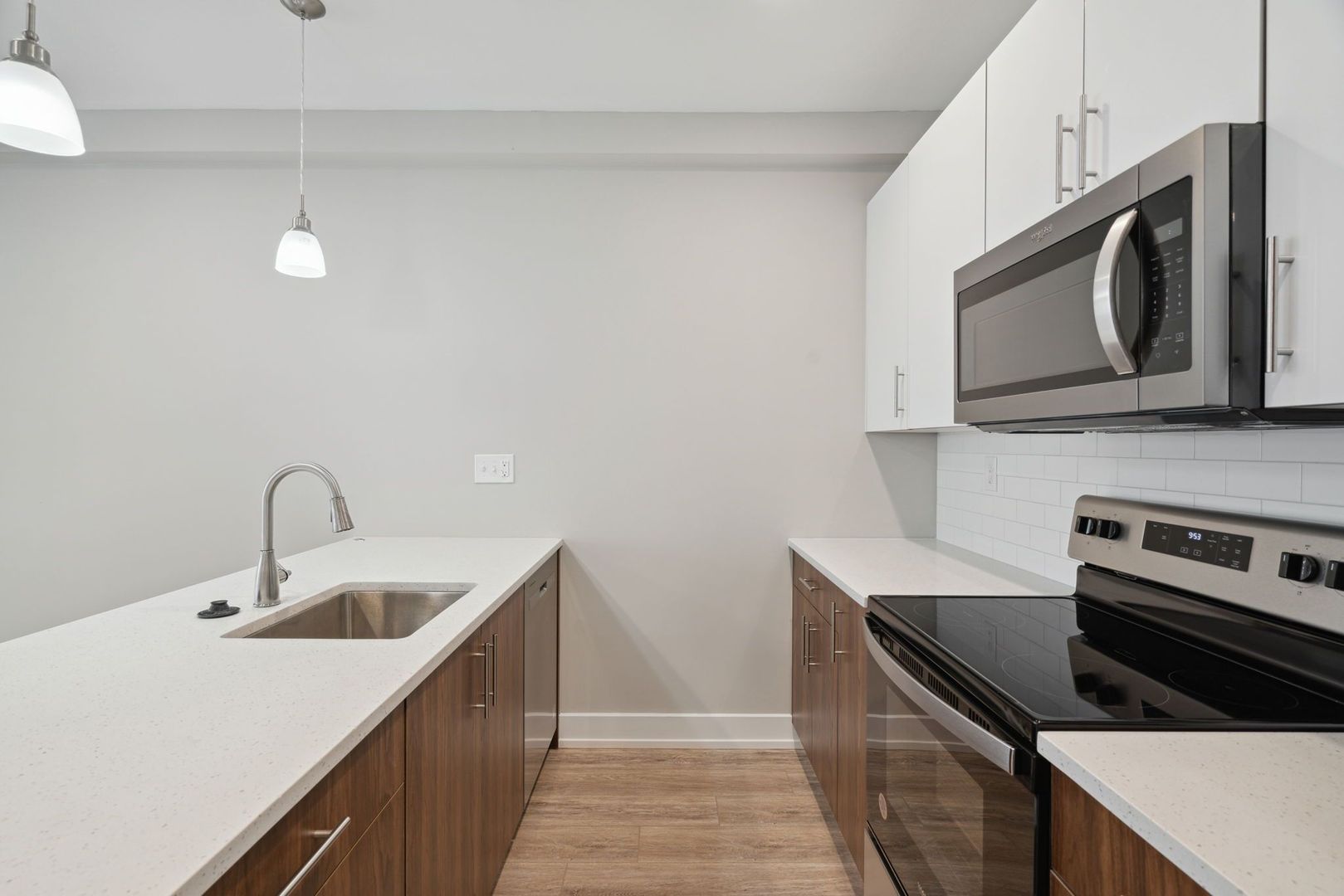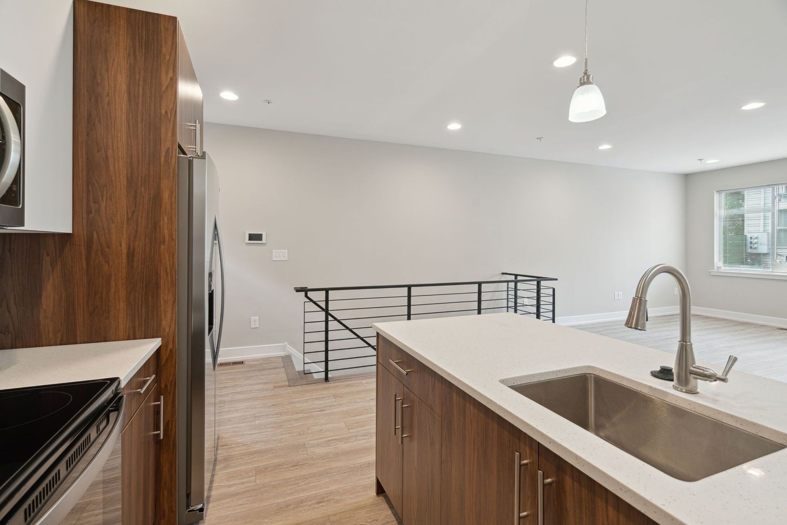 Step inside this large one-bed one-bath bi-level to discover an open floor layout featuring an open layout, eat-in kitchen, and quartz countertops. The kitchen offers stainless steel appliances and opens into the large living space lined with large windows providing natural light. Laid with pecan wood-toned flooring, the bedroom has ample closet space and room for a dresser, nightstand, desk, and any other additional accessories. After dusk, there is no need to reach for your floor lamp as this unit has recessed lighting throughout.